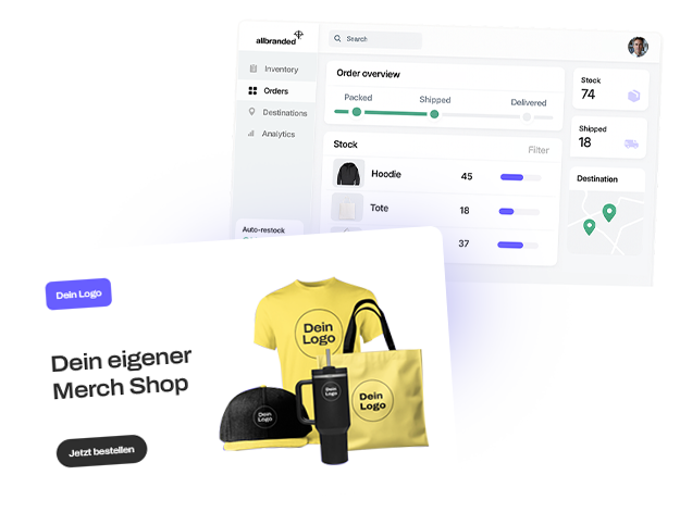 Verkaufe On-Brand Merch an deine Community, Fans oder Kund:innen. Wir kümmern uns um Fulfillment, Logistik & Produktion - du um die Experience.