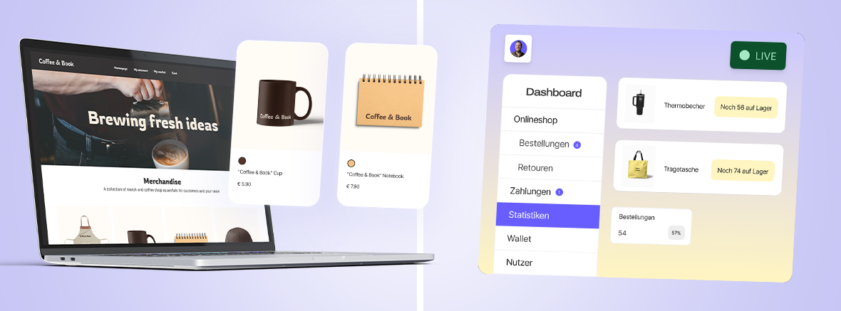 Zwei smarte Lösungen, wie Unternehmen heute Merch managen - für Teams, Fans und Marken.